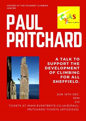 All the way from Tasmania, famous climber & speaker Paul Pritchard will be doing a talk at The Foundry on Sunday 18th December. It is a special event for our charity and after expenses any proceeds will go to club funds. Nick Whittaker is going to introduce Paul, and will introduce our club to the climbing community.
